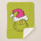 This fantastic, bold illustration is a close-up portrait of the Grinch in full mischievous mode! He has his signature sly grin and bright yellow eyes, but his look is updated with a large, fluffy Santa hat in a fun, unexpected pink/fuchsia color instead of the traditional red. This graphic is perfect for anyone who loves the holidays but embraces a non-traditional, delightfully grumpy, and colorful style!