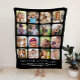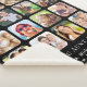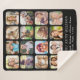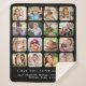 Crea una manta personalizada de keepsake sherpa para una tía favorita con 16 marcos cuadrados redondeados con fotos de sus sobrinas y sobrinos, familia, mascotas u otros recuerdos especiales y dos líneas de texto de personalizable, como "Te queremos tía" y los nombres de los miembros de su familia, en una tipografía blanca y elegante sobre un fondo negro.