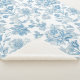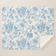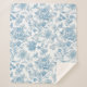 Elevate your bedding with our new Sherpa Blanket design featuring an elegant Toile-de-Jouy Chinoiseries blue floral pattern, against a custom white background.