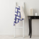 Esta manta de sherpa presenta un elegante diseño de chevron con un patrón geométrico de arenque en una moderna sombra de perwinkle con líneas negras.