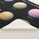 Ilustracion que representa a los tres planetas gigantes orbitando la estrella tipo Sol Kepler 51 en comparación con algunos de los planetas de nuestro sistema solar. Todos estos planetas son aproximadamente del tamaño de Júpiter, pero una fracción muy pequeña de su masa. Esto significa que los planetas tienen una densidad extraordinariamente baja, más parecida a la de la espuma de poliestireno que a la roca o el agua. Los planetas pueden haberse formado mucho más lejos de su estrella y haber emigrado hacia adentro. Ahora sus atmósferas infladas de hidrógeno/helio están sangrando en el espacio. Con el tiempo, se podrían dejar atrás planetas mucho más pequeños. Los colores de este ilustracion son imaginarios.