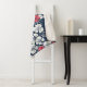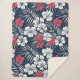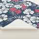 Pink and white flower bloom against a navy blue background on this tropical floral abstract print.