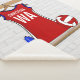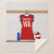 Este diseño personalizado se puede crear en cualquier combinación de colores para la estrella de netball de su familia. Contáctenos a través de nuestra tienda de regalos Bonanaza con su solicitud Un diseño único para el jugador de netball o hincha de netball con un uniforme de netball colgado en un vestuario deportivo en rojo con guarnecido azul y blanco. El nombre y la posición de netball se pueden personalizar para el jugador de netball. Al lado del uniforme de netball hay una botella de agua y de netball.