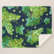 Manta Sherpa Uva verde acuarela, hojas sobre fondo oscuro.