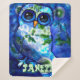 Manta Sherpa Whimsical Abstract Owl Blue Green Personalizado