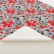 Sherpa Blanket en una estampada floral de William Morris vintage de lirios estilizados e irlandeses, realzada digitalmente y coloreada, en tonos grises/grises y negros, con flores rojas profundas, sobre un fondo blanco