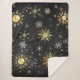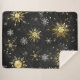 Manta Sherpa Xmas Golden Snowflakes on Black Background