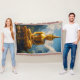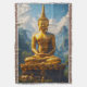 This artwork perfectly captures the majesty and tranquillity of Thailand, featuring a massive, gilded Buddha statue in the Dhyana Mudra (meditation posture), set against a dramatic backdrop of towering, cloud-kissed mountains. The vibrant gold and deep emerald greens create a powerful, peaceful contrast that will become the focal point of any room.