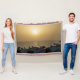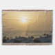 Vista del complejo de bungalows al mar con barco de vela al atardecer, en Costa Adeje, España, Tenerife
