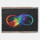 Símbolo de infinito dibujado artísticamente con una hermosa pluma arco iris sobre fondo blanco. Estilo tatuaje.