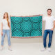 En tonos turquesa, un patrón geométrico que forma círculos anidados regulares decora la manta de tiro. El resultado es una manta de moda y audaz. Para todos aquellos a los que les guste el diseño de patrones en un color creativo de su elección para que coincidan o redefinan un color de acento de la sala de estar, a continuación colóquelo a su manera personalizando el color de relleno. Un atributo que también funciona fabulosamente para mejorar el color del acento de tu salón. Pero también, cuando se busca un regalo de cumpleaños, un regalo para el hogar o incluso un regalo boda para recién casados. Para obtener ayuda o consultas de diseño personalizadas, póngase en contacto con info@kbmd3signs.com