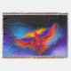 Fiery phoenix sobrevolando el espacio en una nube nebulosa azul y púrpura en un cielo estrellado por la noche. Un brillante grupo de estrellas forma la constelación fénix. Orientación horizontal. ♡ Idyllfire