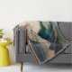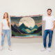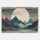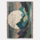 Un paisaje abstracto de una superluna masiva en una escena de un lago montañoso con una bandada de aves en texturas atrevidas y tonos oscuros de tierra de marrón, beige, marrón, azul, cian y negro.