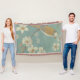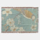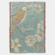 Manta Tejida Ave amarillo, gris y beige encaramado en una rama