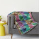 El patrón original de esta Throw Blanket se hizo a partir de fotografías originales de ZoeSPEAK de hojas de plátano en un árbol en el jardín. Las fotos son cierres, mostrando los patrones de las hojas en forma de cinta mientras se curvan unas a otras a la luz del sol. Las fotos han sido tintadas con una variedad de colores mudos, verduras, azules, marrones y morados. Las costuras en las que se encuentran las fotos tienen bordes ligeramente ondulados, como si estuvieran cosidos como un edredón.