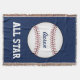 Un béisbol tradicional decora esta divertida manta de tiro. Personalice esta manta cambiando el nombre. Esta manta es genial para un fanático del béisbol, amante del béisbol, cuarto de niño, dormitorio, hombres, día del padre, hincha deportivo, etc...El diseño es de arte original.