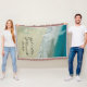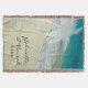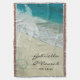 Personalice el Tropical Beach Wedding Throw con los nombres de la novia y el novio y la fecha de la ceremonia matrimonial para crear una especie de compromiso, ducha nupcial o regalo de boda. Esta hermosa manta de boda tropical personalizado presenta una fotografía natural realzada digitalmente de una playa de arena, un océano azul turquesa con una palmera blanca y un verde azulado diseño de remolinos adornando la esquina. Perfecto para la pareja que planea una boda de destino de la isla.