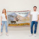 Una pintura digital de un caribú toro en la tundra de Alaska; montañas a lo lejos. Añade tu propio texto.