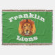 Impresión de la cabeza de león sobre una manta tejida. El color de fondo y el texto se pueden cambiar.