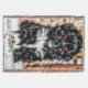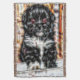 Un perro lindo mirándote con sus brillantes ojos rojos parados en un riel, un cachorro de Pekín blanco y negro llamado peter