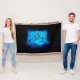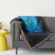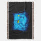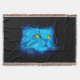 Una cara de gato azul fracturada con impresionantes ojos amarillos contra un fondo negro.