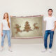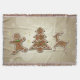Elegante y delicioso ilustracion de Navidades: Árbol de Navidad de pan de jengibre decorado, hombre de jengibre y ciervo de jengibre con estrellas doradas en un fondo de bokeh marrón.