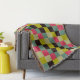 Un patrón compuesto por cuadrados de cinco colores diferentes, dispuestos en baldosas 4x4. Sin embargo, las baldosas 4x4 de la derecha se invierten y crean un diseño general más interesante. Este diseño se crea a partir de un gráfico vectorial de tamaño completo específicamente para este tipo de manta. Por lo tanto, los cuadrados de color de los bordes se extienden completamente al área de sangrado, asegurando que no haya bordes de patrón no deseados en el producto final.