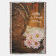 Personalice la moda rústica Daisies rosados y Boots pavos Boda occidental del país con los nombres de la novia y el novio y la fecha de la ceremonia matrimonial para crear un regalo de sake para una fiesta de compromiso, ducha de novia o matrimonio. Esta encantadora manta de boda con tema de rancho personalizado presenta una pintoresca fotografía floral realzada digitalmente de un par de botas de vaquero occidental de cuero marrón con un ramo de flores rosadas de margarita y velo de novia blanco con fondo de madera de grano templado.