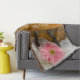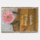 Mantén a los recién casados acogedores y cálidos cuando personalizes el encantador Boda occidental de Daisy Rosa y Horseshoe Country con los nombres de la novia y el novio y la fecha de la ceremonia matrimonial. La manta nupcial de esta moda rústica de personalizado equina presenta una pintoresca fotografía floral de una flor rosa claro de margarita, velo de novia blanco, collar de perlas y una herradura oxidado con fondo de granero marrón templado.