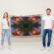 Diseño abstracto de flores verdes y rojas.