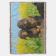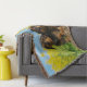 Dos adorables perros de alambre de color jabalí con el pelo adachshund lado a lado frente a las flores amarillas de las flores de las violaciones. Una linda y divertida foto de doggy tomada por Katho Menden. Esta acogedora manta de tiro es una idea de regalo para los amantes del perro.