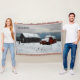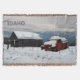 Escena rural, invernal, con un camión rojo, ruinoso, con nieve, sentado cerca de una cabaña destartalada cerca de Sandpoint, ID. También aparece un texto de personalizable que dice "IDAHO".
