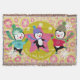 Los Navidades de vacaciones de Penguins Holly Jolly tienen un bonito diseño con una estrella y un fondo rosado y crema, un anillo amarillo mostaza, un centro de estrellas rosa, copos de nieve de blanco, tres adorables pingüinos con sudaderas, gorras de invierno, patines de hielo y bufandas, y texto blanco de personalizable que dice ¡Ten un Navidad de Holly Jolly!