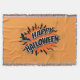 Feliz ilustracion de Halloween al estilo cómico con diseño de texto, murciélago y decoración de estrellas en medio tono de fondo. Es posible cambiar el color de fondo y añadir uno diferente al diseño con su elección.