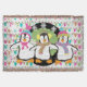 Happy Little Pingüins (La festividad de los pequeños pingüinos) incluye tres lindos pingüinos en los ardientes, gorras de invierno y pañuelos en un fondo blanco con cuerdas de luces de colores, una franja de negro sólido con copos de nieve blancos y un centro verde con puntos de polka blanco.