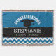 Un diseño divertido para celebrar al graduado. Añade un nombre y un año para hacer un favor o recuerdo de una fiesta de graduación personal. Diseño clásico con tapón de graduación y fondo de color sólido con patrón de chevron.