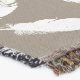 Impresión de plumas blancas en piedra mediana / taupe - diseño gráfico de medios mixtos de plumas blancas, flotando sobre un fondo contrastante y de color