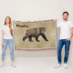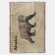 Presenta una pintura digital de un oso Kodiak en un pergamino neutro, o papel antiguo, fondo. También aparece un texto de personalizable que dice "Alaska". El oso Kodiak (Ursus arctos middendorffi), una subespecie del oso marrón, o pardo, son los osos más grandes del mundo. Un macho adulto puede tener más de 10 pies de altura cuando está erguido sobre sus patas traseras y pesa más de 1500 libras -verdaderamente un espectáculo para contemplar. Se estima que un oso en el zoológico de Bismarck del Norte pesó hasta 2400 libras. Los osos viven en las islas del archipiélago Kodiak de Alaska. Hoy en día hay aproximadamente 3500 osos de Kodiak y su número está aumentando debido a las excelentes condiciones de su hábitat, incluido el puño suficiente para comer. Se les llama "takuka-aq" en Alutiq, la lengua de la gente nativa de esa zona. Se cree que los osos han estado aislados allí desde finales de la última Edad de Hielo hace más de 12,000 años. Aunque son el carnívoro terrestre más grande, su dieta incluye grandes cantidades de hierba, otras plantas y bayas. Hoy en día hay aproximadamente 3500 osos de Kodiak y su número está aumentando debido a las excelentes condiciones de su hábitat, incluyendo peces suficientes para comer. Debido a la abundancia de recursos alimenticios, los osos de Kodiak tienen rangos domésticos más pequeños que cualquier otro oso pardo y no tienen necesidad de defender territorios. El pueblo de Alutiq cazaba osos por comida, ropa y herramientas. Las flechas, las lanzas y una gran cantidad de coraje eran necesarios para el equipo de caza. Por lo general, las cabezas de oso se dejaban en el campo como señal de respeto al espíritu de los osos.