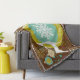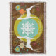Los hermosos Navidades de vacaciones lanzan una manta con un fondo marrón oscuro con copos de nieve coloridos, un anillo de mostaza sólida amarillo, y un centro de azul acuático con pequeños puntos de polka blanco y un gran centro de copos de nieve. Dos ciervos blancos de silueta y adornos de árboles de bonito adornan esta fantástica salida de las vacaciones y hay un área que puedes personalizar fácilmente con tu nombre familiar.