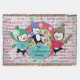 Hermosas vacaciones de Navidades arrojan manta con tres adorables pingüinos en patines de hielo, sudaderas, pañuelos a rayas y gorras de invierno sobre un fondo blanco con un texto colorido que lee Felices Fiestas y Saludos de Temporadas, una sólida zona rosa con copos de nieve blancos y un centro blanco con copos de nieve en las orbas. ¡Puedes personalizar fácilmente con tu apellido!