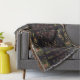 Exótica y oscura, con colores naturales y un ligero sabor a Oriente, el bonito patrón original de ZoeSPEAK en esta manta de Throw se hizo a partir de una fotografía original de láminas de hierro forjado y tela de impresión tropical. Las fachadas de las palmas y otras hojas tropicales, en tonos verdes pálidos, terracota y beige, descansan con gracia sobre un fondo negro detrás de las láminas.