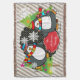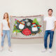 ¡Nuestros pingüinos patinadores personalizaron características de la manta del tiro del día de fiesta dos pingüinos lindos que llevaban patines de hielo, los gorras del invierno, y las bufandas en un fondo diagonal blanco y gris de la raya con los pequeños lunares en negro con los copos de nieve del blanco, de dos árboles de navidad adornados, y de una bandera roja que usted puede personalizar fácilmente con un nombre!