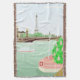 Monograma Torre Eiffel Primavera en París Tiro Blanket con el paisaje de París - Torre Eiffel, Río Sena con botes, florido castaño y Puente Alexander III, uno de los lugares más bellos de París. Barco rosa y blanco con un nombre personalizado. Colores pasteles: agua, azul, marrón, verde, rosa. Un regalo encantador y romántico personalizado.