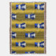 Un bonito y colorido patrón de Navidades con hombres de nieve vestidos con sombrero de terciopelo azul y chalecos, sobre un fondo dorado festivo con estrellas doradas para añadir un toque elegante y caprichoso a la decoración de casa de tus Navidades este año.