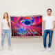 Una imagen fractal giratoria brillante, multicolor (rojo, púrpura, azul). Añade tu propio texto.