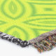 Un hermoso patrón geométrico en los colores primaverales chartreuse verde que forma una flor abstracta adorna esta hermosa manta de lanzamiento.