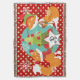 ¡Navidades de la Fox Roja personalizada lanzan manta, colorida, divertida, linda y alegre! Cuenta con dos zorros rojos con gorra de invierno y bufandas, un árbol de Navidad con bolas rojas y copos de nieve de blanco sobre un fondo azul acuático con un borde de rojo con puntos de polka blanco. También hay un banner de forma estrella que puedes personalizar con tu primer monograma!