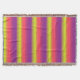 Una repetición de tres colores de rayas de dogtooth brillantes estampado en verde lima, púrpura y rosa, de Sarah Trett. Se vería genial en un dormitorio, salón.