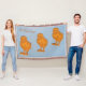 Una postal antigua y vintage de la Pascua feliz con tres chicas de fieltro amarillas borrosas todas seguidas. Antecedentes en azul. ¡Feliz Pascua!
