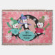 Manta Tejida Tira de nieve rosa y puntos pingüinos de vacacione